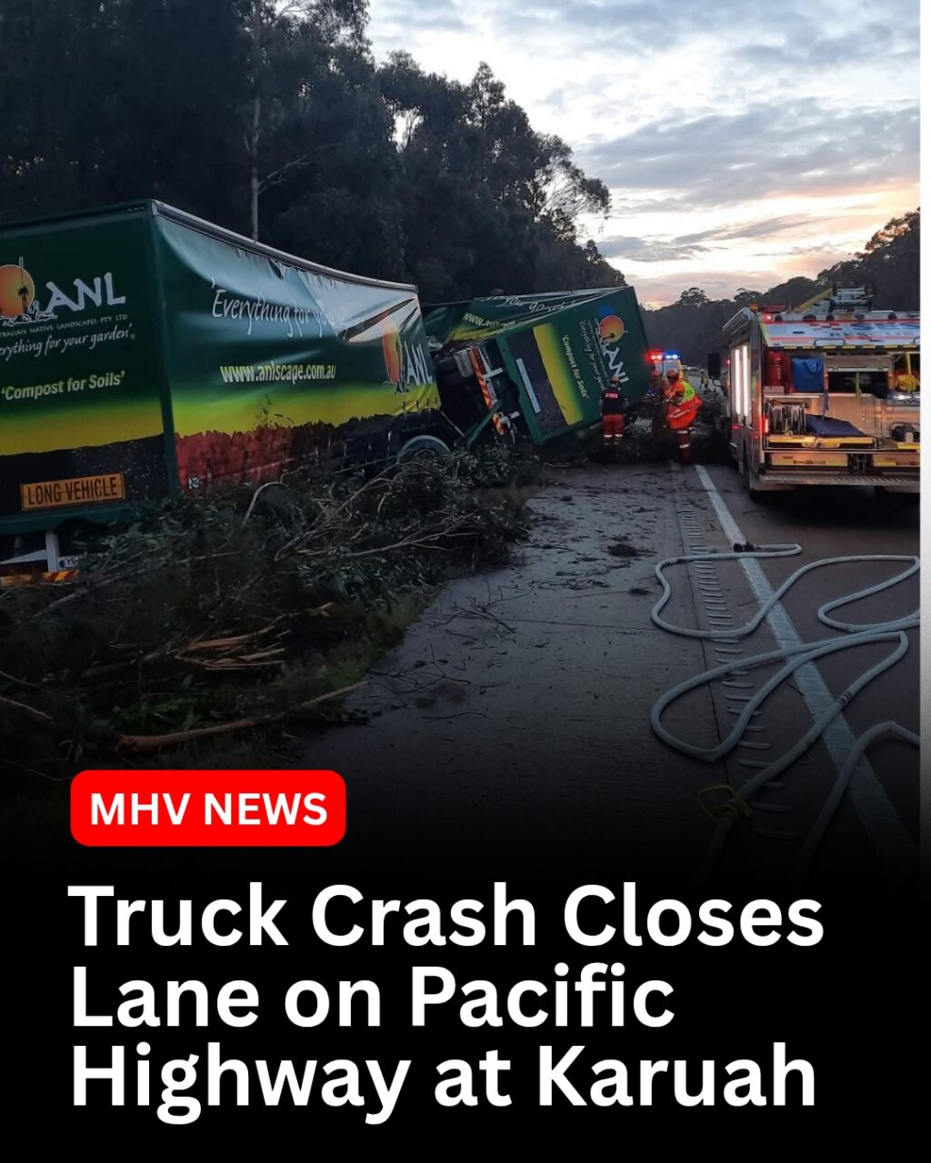 Emergency services were called to a single-vehicle crash involving a truck on the A1 Pacific Highway at Karuah just before 6:30am this morning. The crash occurred in the northbound lanes between Bucketts Way and Tarean Road. NSW Ambulance paramedics treated the truck driver at the...