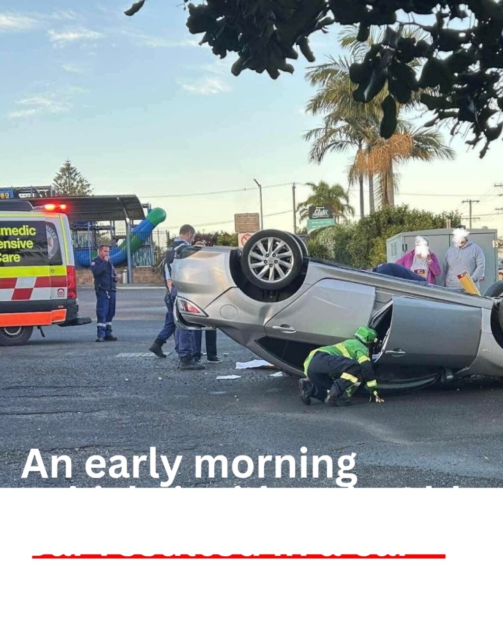 Emergency services were called to a crash in Old Bar early Tuesday morning after a vehicle struck bollards in a car park and rolled onto its roof.