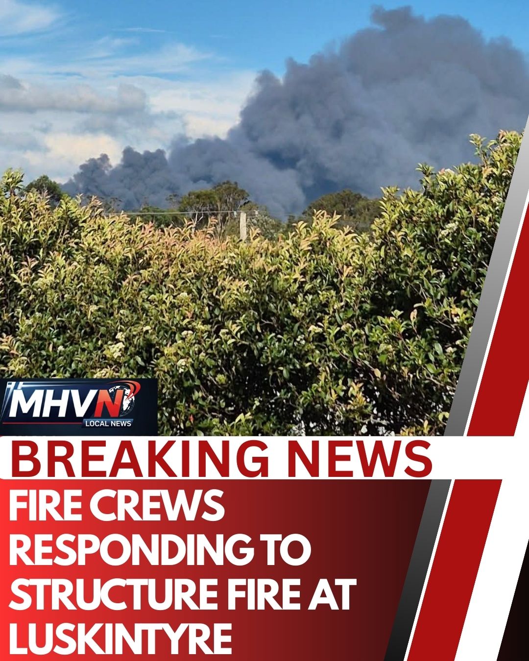 A large smoke plume is visible across the region. Motorists and nearby residents are advised to avoid the area and follow any directions from emergency services.