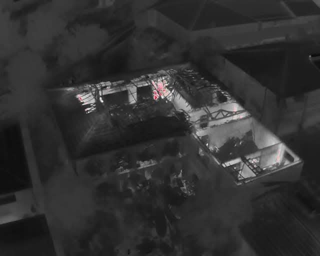 Firefighters deployed 40 breathing apparatus cylinders throughout the operation to bring the blaze under control. Thermal imaging drones from Pumper 208 were used to identify remaining hot spots.