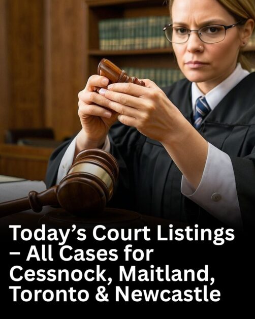 Welcome to your up-to-date source for today’s court listings across Cessnock, Maitland, Toronto, Raymond Terrace and Newcastle. This comprehensive list features all cases scheduled for hearing today in these key Hunter Region courts, including Cessnock Local Court, Maitland District Court, Toronto Magistrates Court, Muswellbrook Local Court and Newcastle Supreme Court.
