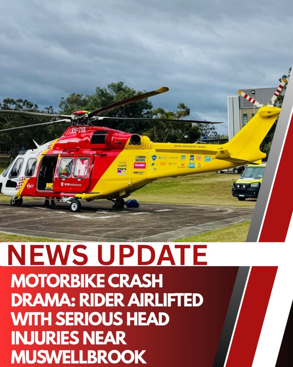 A man in his 30s has been rushed to hospital with serious head injuries following a motorcycle crash in Muswellbrook on Friday afternoon. Emergency services were called just after 4:30pm on March 27, with NSW Ambulance requesting urgent aerial support from the Westpac Rescue Helicopter...